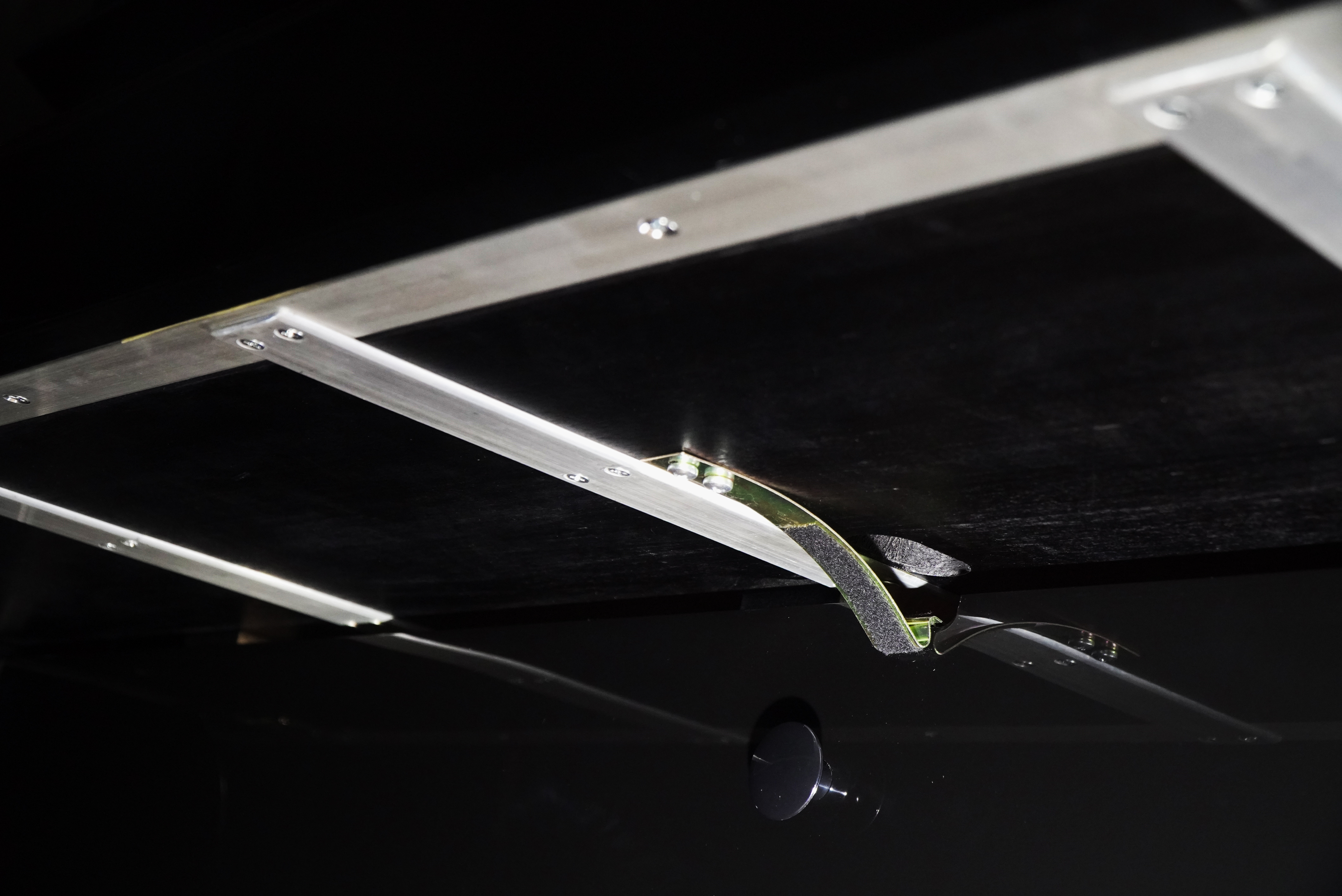 12.海倫HU 121C-A鋼琴采用插裝式弱音檔,美觀大方,角度定位合理,踏瓣聯動系統無雜音。鋁合金包裹實木多層板的調節檔,具有更好的穩定性。