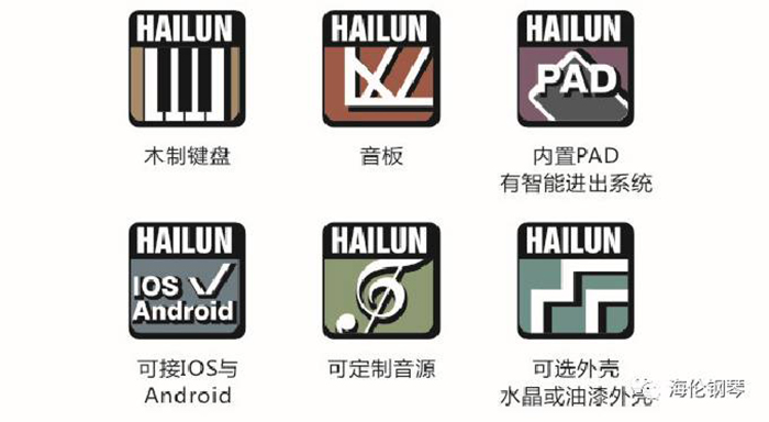 HAILUN在其優秀的傳統鋼琴基礎上,搭載現代數碼電聲及智能樂譜技術,結合各自發聲和操作優勢,進而與互聯網相連接構建售后增值教育服務的
