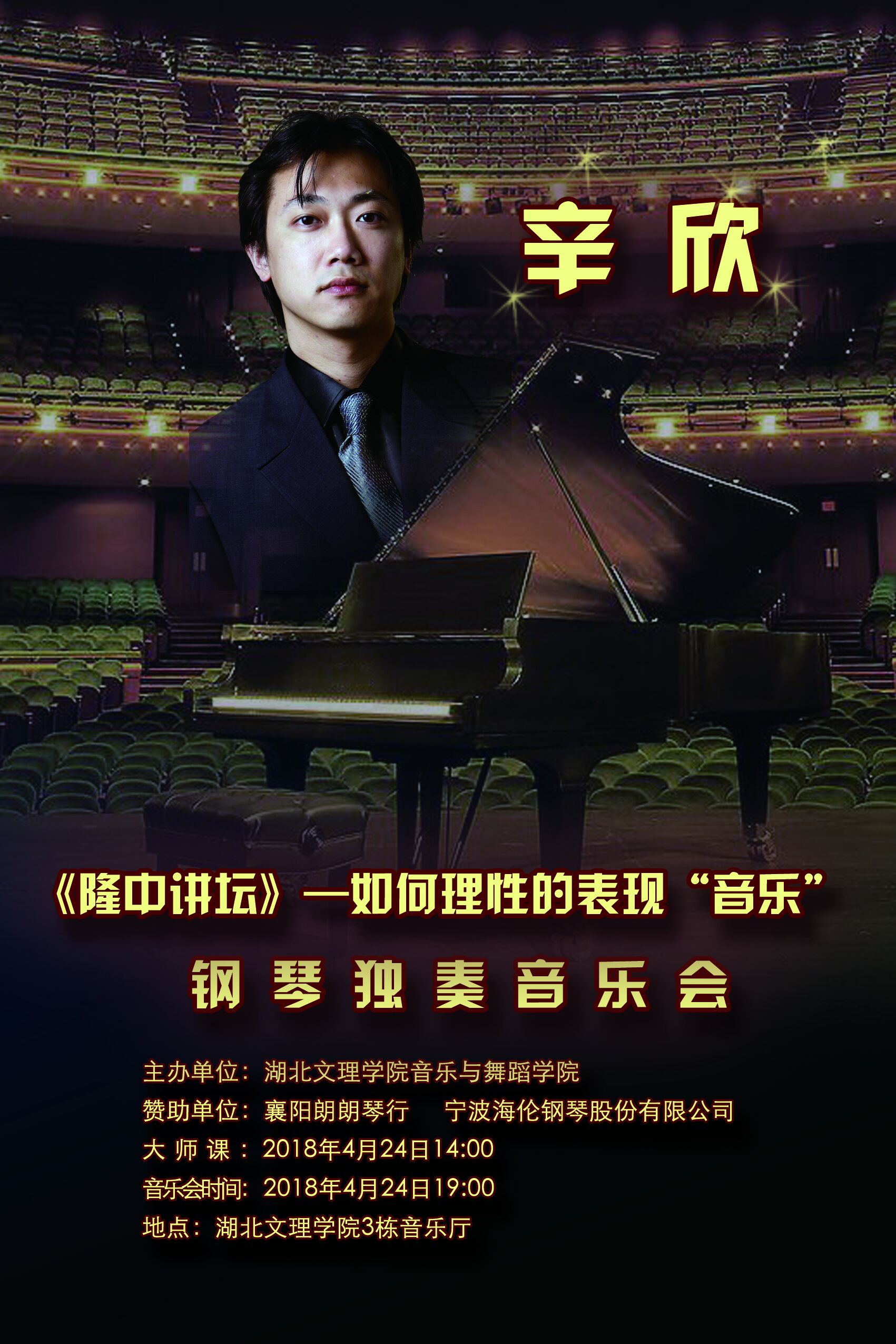 4月24日,在湖北文理學(xué)院,下午成功舉行了《隆中講壇》辛欣大師課《如何理性地表現(xiàn)“音樂”》,當(dāng)晚《辛欣教授鋼琴獨奏音樂會》的演出也獲得了圓滿成功,大師課和獨奏音樂會活動由湖北文理學(xué)院音樂與舞蹈學(xué)院主辦,襄陽朗朗琴行、海倫鋼琴股份有限公司協(xié)辦,海倫鋼琴為指定用琴。