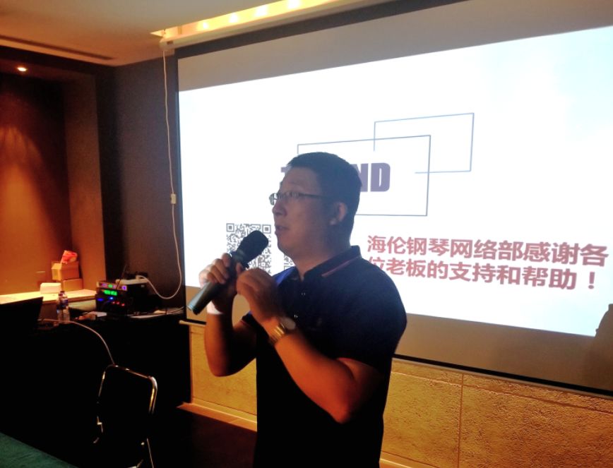 海倫網絡部負責人馬剛則針對網絡銷售發展的必要性,線上網絡推廣宣傳的進展和海倫鋼琴目前已經取得的網銷成績進行了介紹,同時也針對線上網絡營銷的實操給大家進行了詳細的講解。