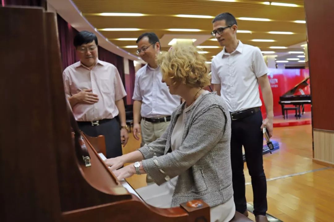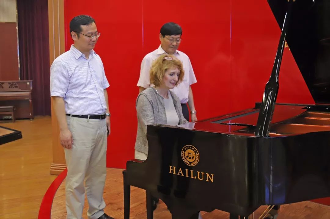 7月7日上午,奧地利維也納音樂表演藝術大學校長烏里克·祖茜(Ulrike Sych)及前任副校長威德霍姆(Widholm)到訪海倫鋼琴。