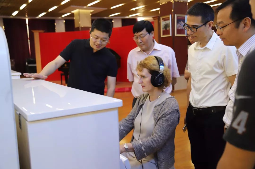 接下來,烏里克·祖茜和威德霍姆參觀了海倫鋼琴榮譽室和海倫鋼琴產品展廳。