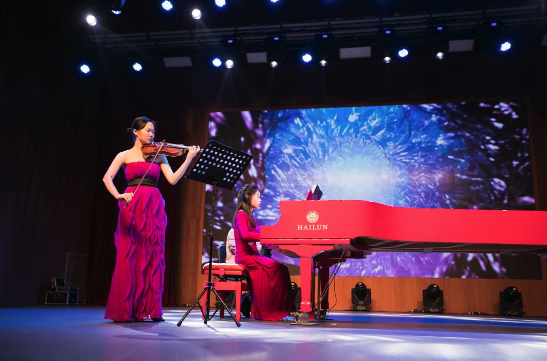 兩位藝術家為大家獻上了多首經典樂曲的演奏。不僅有來自西方音樂家諸如莫扎特、肖邦的經典曲目,還有由我國民族樂曲改編的《漁舟唱晚》、《梁祝》等,更有經典電影的配樂改編。而由活動工作人員特別設置的舞臺大熒幕,更是讓音樂廳成為一個高大典雅的音畫空間。