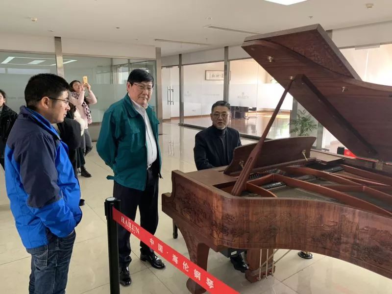 楊天君教授還在陳海倫董事長的陪同下試奏了當年頗受業界關注和好評的海倫紅木大型音樂會三角鋼琴。他對海倫鋼琴出眾的音色和觸鍵反應贊不絕口,并對海倫鋼琴作為國內上市樂器制造企業的佼佼者而取得的成績表示祝賀。