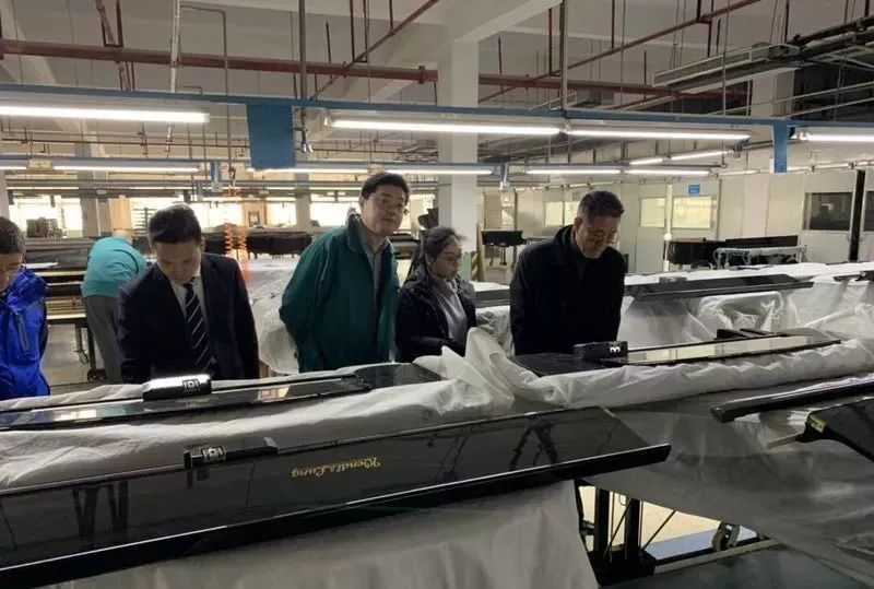 陳朝峰經理向他們介紹了海倫鋼琴的組裝流程和海倫鋼琴的鋼琴研發制造現狀,同時還帶他們參觀了部分比較關鍵的組裝工藝生產線。楊天君教授在大體了解海倫鋼琴制造之后,對海倫鋼琴的一些獨有的技術專利表示贊賞,并希望海倫鋼琴能夠研發出更多出色的讓市場和消費者認可的產品。