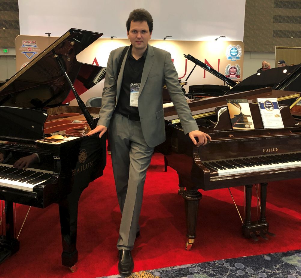 NAMM協會具有近9000家會員公司,這些公司散布在87個國家,且NAMM展會僅對專業交易商及交易觀眾敞開。海倫鋼琴的老朋友、俄羅斯鋼琴家弗拉基米爾·科尼埃科瓦也來到本屆樂器展現場。這位藝術家為海倫鋼琴公司參展送上親切祝福,并在海倫鋼琴前留影。