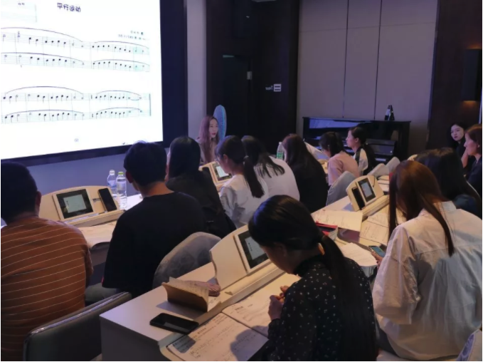 本次課程教學安排非常緊湊,兩位老師按照中央音樂學院編輯出版的教材,耐心細致地為學員們逐音逐句地進行講解,不僅教會學員們掌握每首樂曲的譜面,還教授了如何引導不同年齡段的孩子學習音樂和鋼琴。