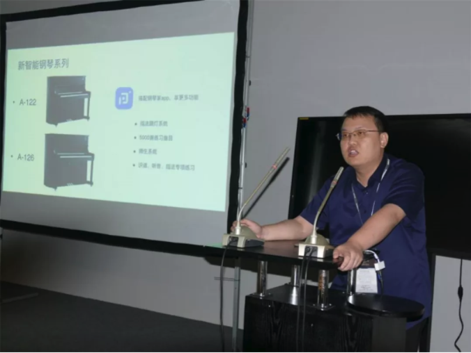 會(huì)議伊始,海倫鋼琴董事兼副總經(jīng)理陳斌卓上臺(tái)致辭,重點(diǎn)闡述了海倫公司今后工作的主方向。