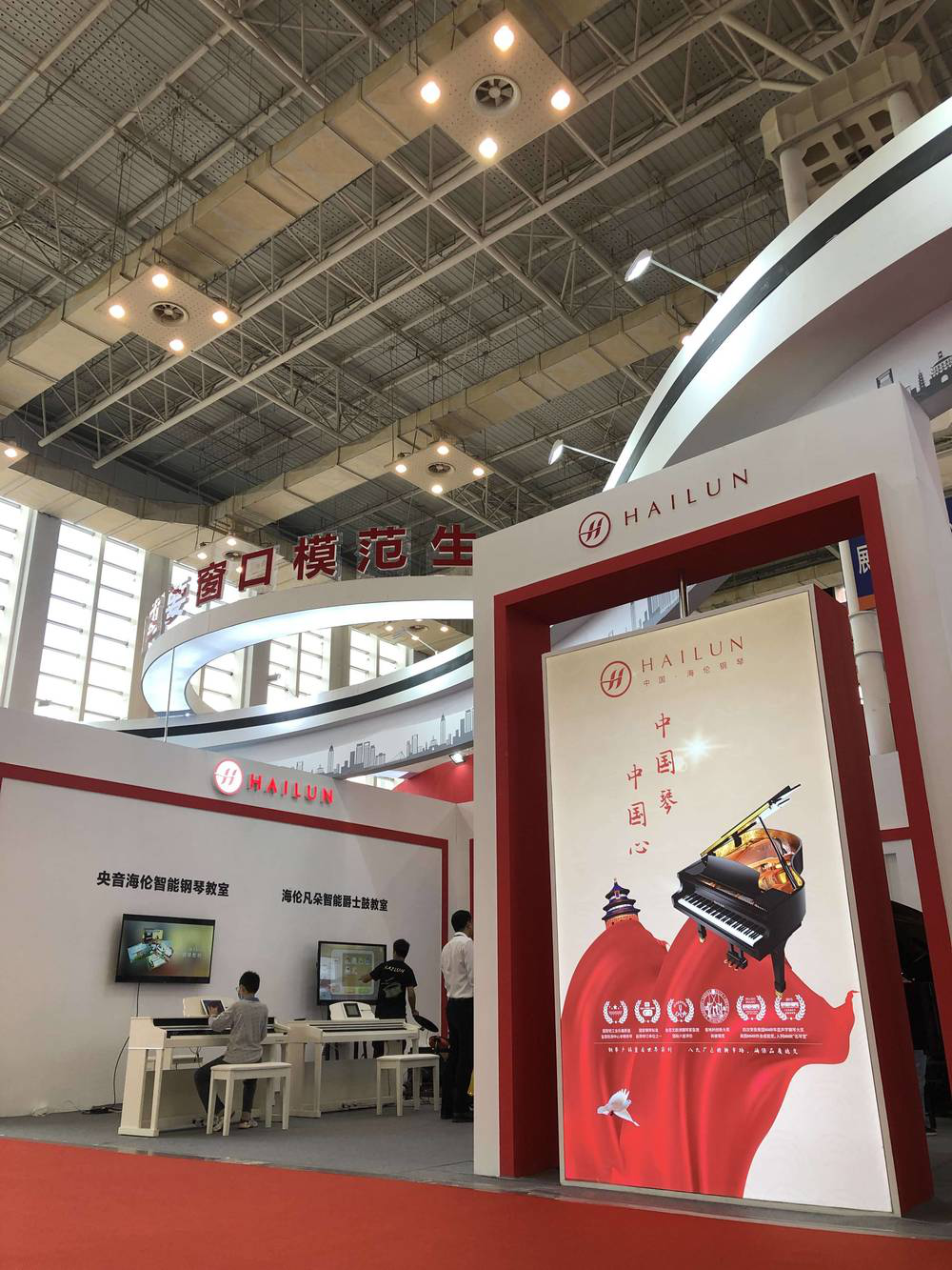 展會現場,海倫鋼琴董事長陳海倫,總經理陳朝峰等人陪同參觀。