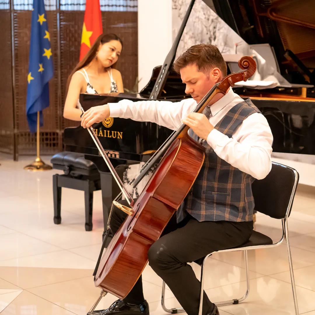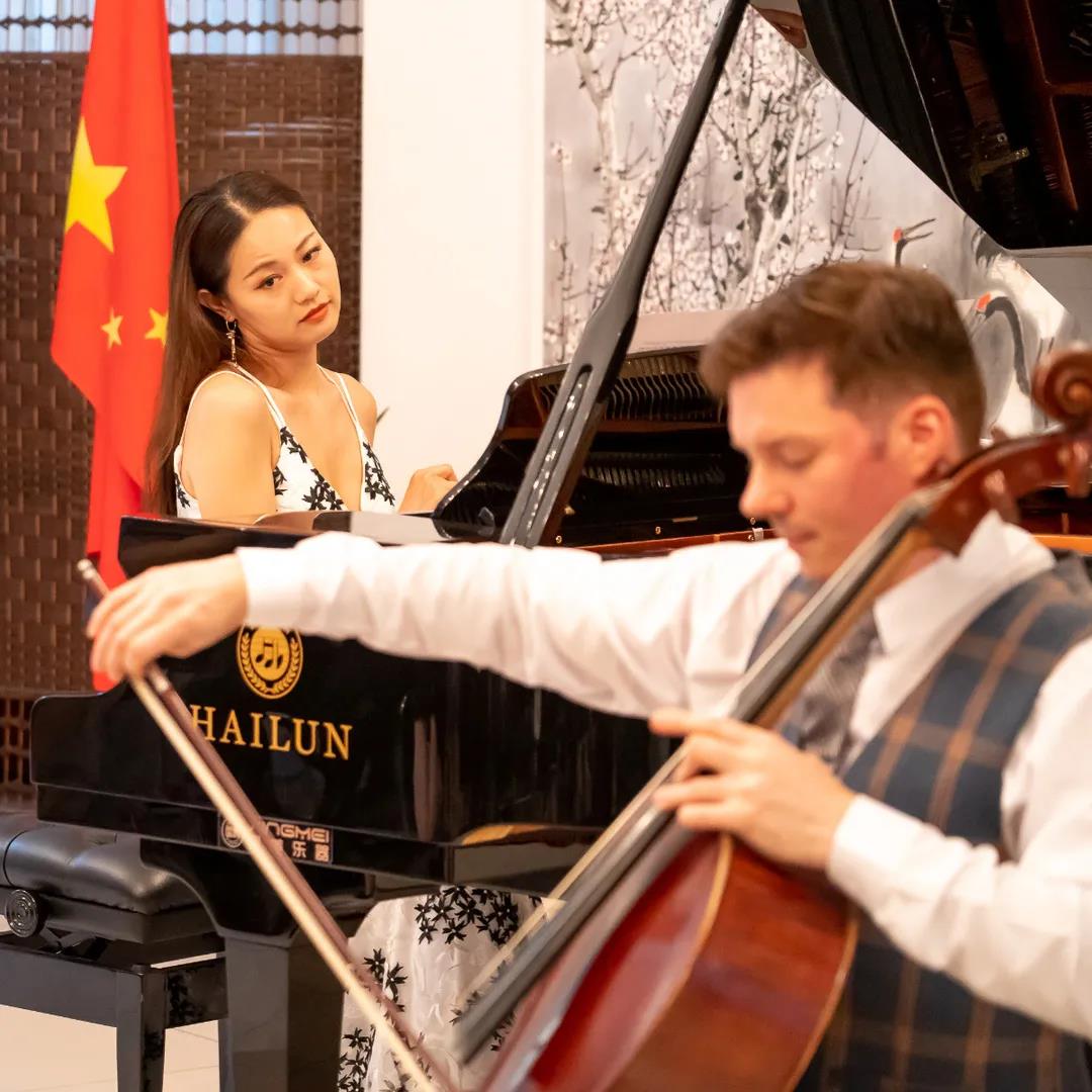 音樂會(huì)上,旅歐鋼琴家于微女士及斯洛伐克大提琴家揚(yáng).希斯卡先生聯(lián)袂呈現(xiàn)了一場精彩紛呈的演出。一曲《鴻雁》優(yōu)美絕倫,抒發(fā)了對(duì)故鄉(xiāng)的無限深情。杜尚貝拉大使和多國駐華大使及外交官,中斯各界代表,共同聆聽經(jīng)典音樂之聲。