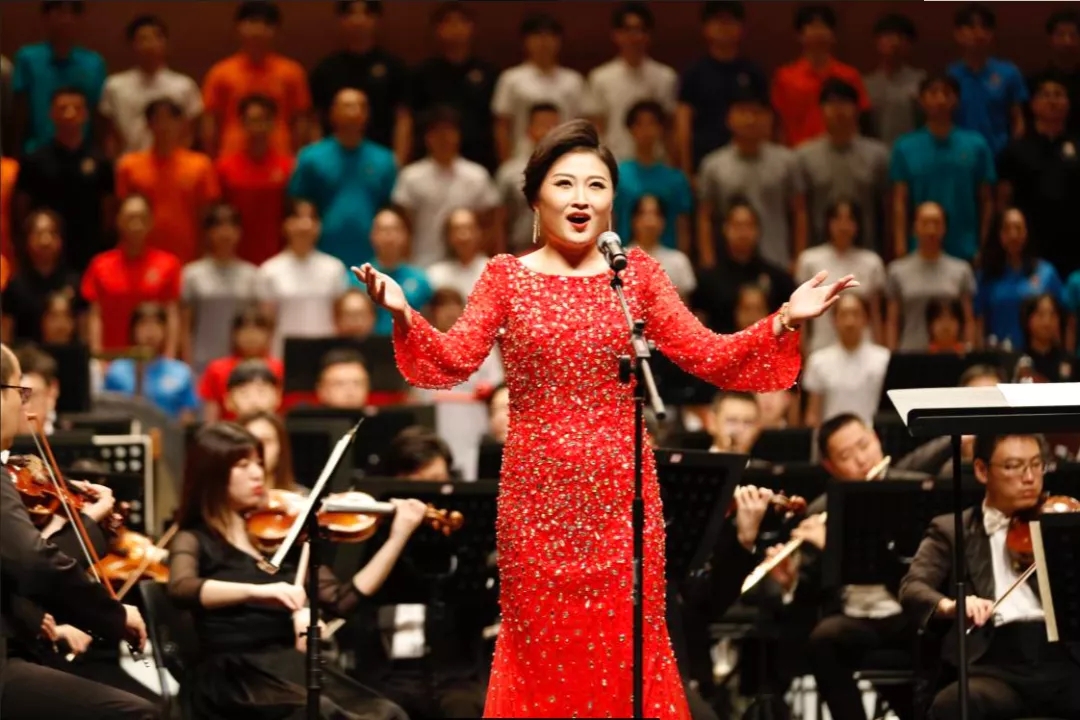 近千人集體合唱《祖國頌》、鋼琴協(xié)奏曲《黃河第三樂章》《黃河第四樂章》、女高音獨(dú)唱《我愛你中國》,一首首觀眾耳熟能詳?shù)那筷懤m(xù)上演。