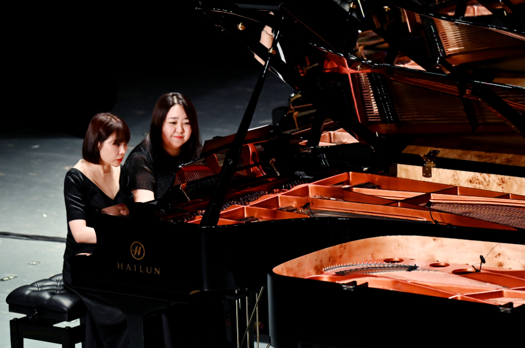 第一篇章“紅日破曉出東方”,雙鋼琴演奏《保衛(wèi)黃河》中,短促跳動、振奮人心的音調(diào)從指尖傾瀉而出,此起彼伏,一浪高過一浪,恰似黃河滾滾奔流,勢不可擋。