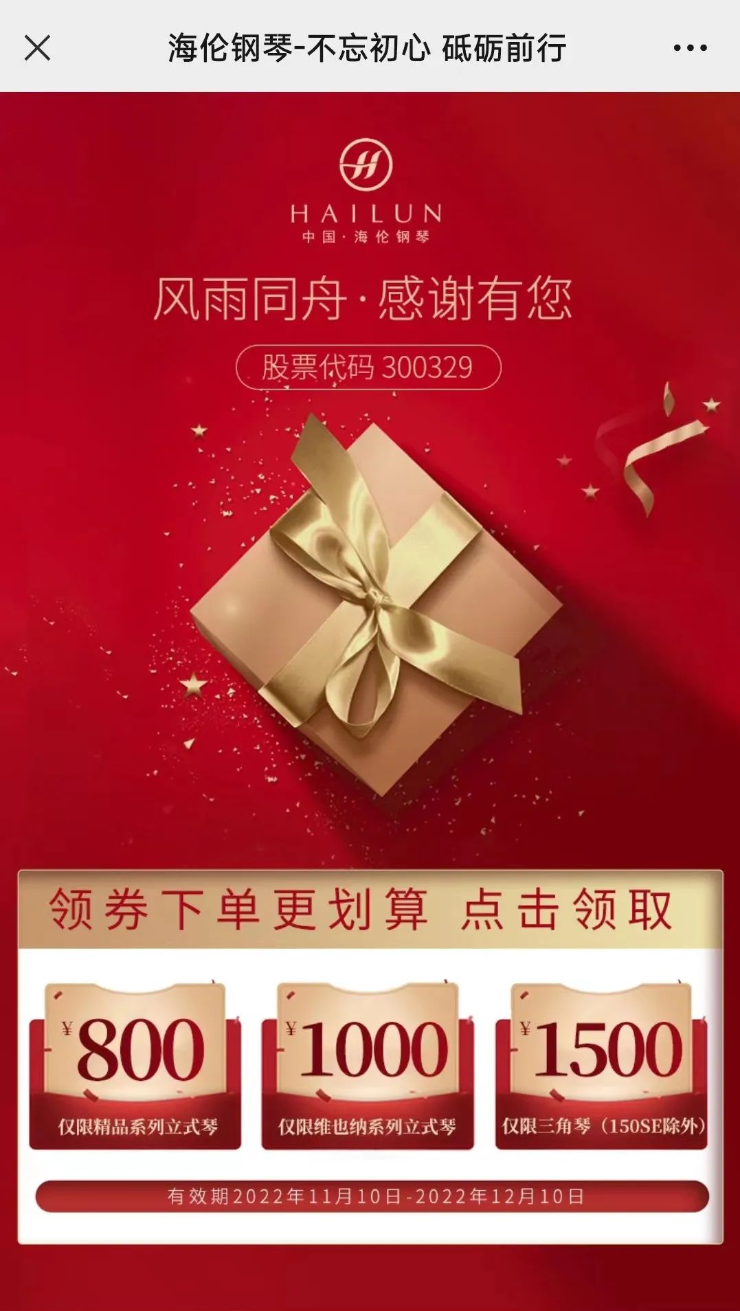 關注“海倫鋼琴”官方微信公眾號,回復“上市十周年”,點擊領取福利進入領券頁面;