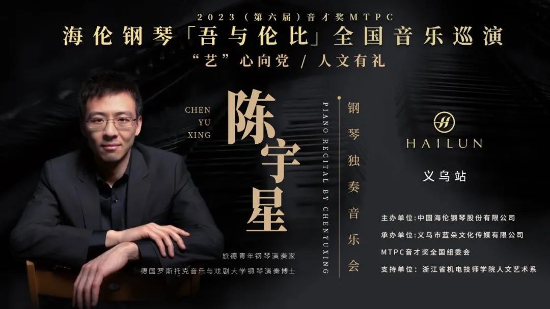 10月21日,由海倫鋼琴股份有限公司主辦,浙江省機電技師學院人文藝術系、義烏市藍朵文化傳媒有限公司、義烏市文海藝術培訓有限公司、MTPC音才獎全國組委會承辦的“2023(第六屆)音才獎MTPC海倫鋼琴「吾與倫比」全國音樂巡演義烏站——陳宇星鋼琴獨奏音樂會”在浙江省機電技師學院音樂廳圓滿落幕。