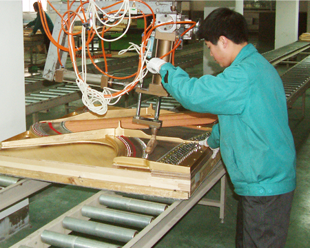 在裝配精度方面,鐵板上所有的鉆孔工作、弦枕筋的銑銷、音源各部件間的接合均由高科技數控設備完成,達到對精度的嚴格控制,進而保證鋼琴的整體質量。