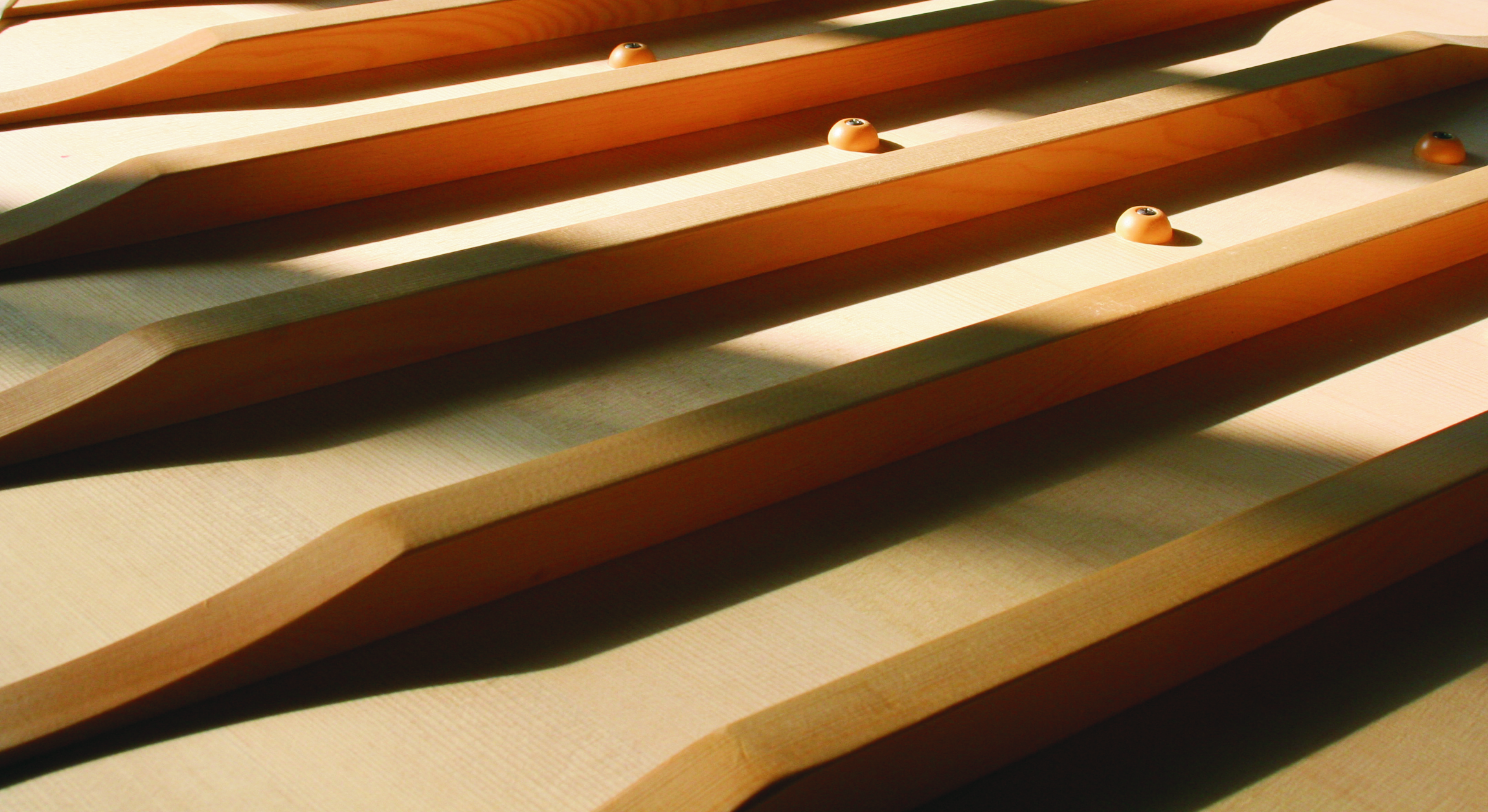 實木云杉音板,保證了音色的優(yōu)美和聲音的良好傳導。弦列振動時不同頻率與音板各對應區(qū)域諧振,基于精確計算的不等厚音板和科學的弧形設計,將音板與不同頻率的振波的諧振效果發(fā)揮到更佳。