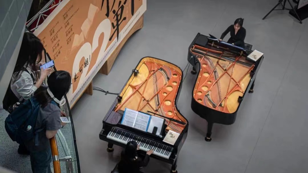 首期音樂會立足于“校長書單”所寄語大學生們的“求真、求善、求美、求思與求學”之意,選取10首經(jīng)典雙鋼琴樂曲。室內樂演奏家葉思思和旅美鋼琴家蘇瑩瑩,現(xiàn)場演奏并分別解說了《六首卡農練習》《瀏陽河》《華麗的探戈》《三首前奏曲》《C大調鋼琴奏鳴曲》《月光》《圣達菲的少女妮娜斯》和《春之聲》等樂曲。