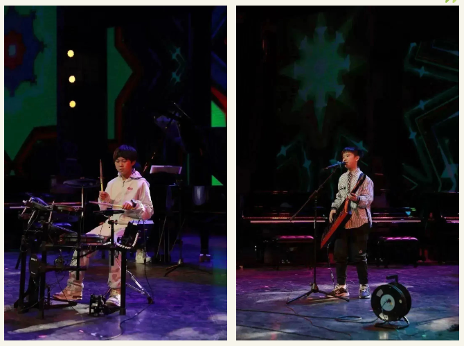 演出現(xiàn)場氣氛熱烈,高潮迭起,特別值得一提的是本次音樂會邀請到了很特別的樂隊——亞歷山大樂隊,他們都是來自清水塘二小,小學六年級的學生,共同演繹了他們的原創(chuàng)作品《omens of love》和《雛鷹之歌》,現(xiàn)場讓大家近距離感受電聲樂隊的魅力。