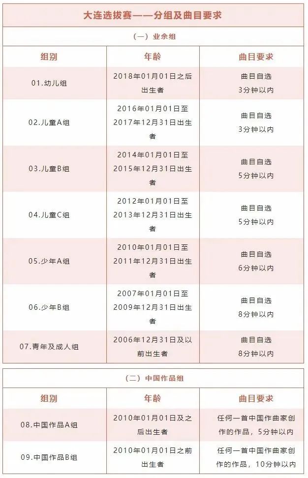 08.參賽者不得臨時更改參賽曲目,必須按照報名表所報曲目演奏,否則不予打分;