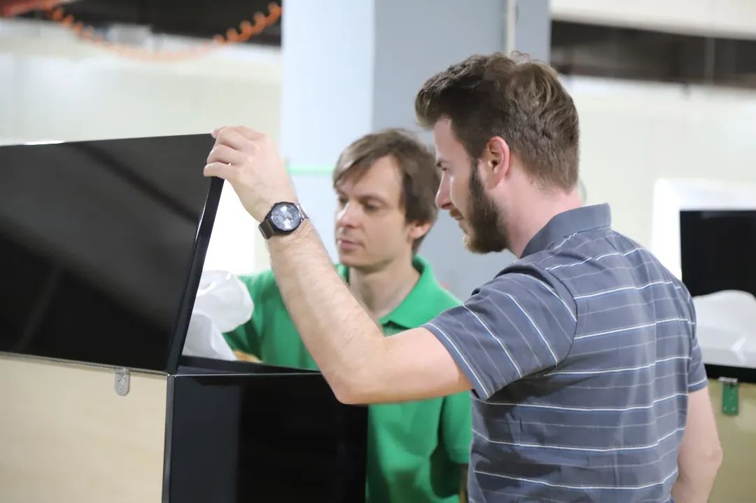 捷克佩卓夫總部的技術(shù)專家代表們在此次訪問中,重點(diǎn)了解了羅瑟的技術(shù)工藝,對海倫鋼琴新廠區(qū)的生產(chǎn)規(guī)模與設(shè)備領(lǐng)先程度、鋼琴成品的音樂性能與技術(shù)工藝表示高度贊賞,盛贊海倫鋼琴是中國鋼琴制造業(yè)的翹楚,與世界多家著名鋼琴品牌存在深度合作,在世界鋼琴制造領(lǐng)域正在展現(xiàn)出強(qiáng)大的影響力。海倫鋼琴董事、副總經(jīng)理陳斌卓與捷克專家領(lǐng)隊Adam Prousek都贊賞雙方多年來融洽的戰(zhàn)略合作關(guān)系,并針對進(jìn)一步技術(shù)領(lǐng)域的深化合作展開了交流。