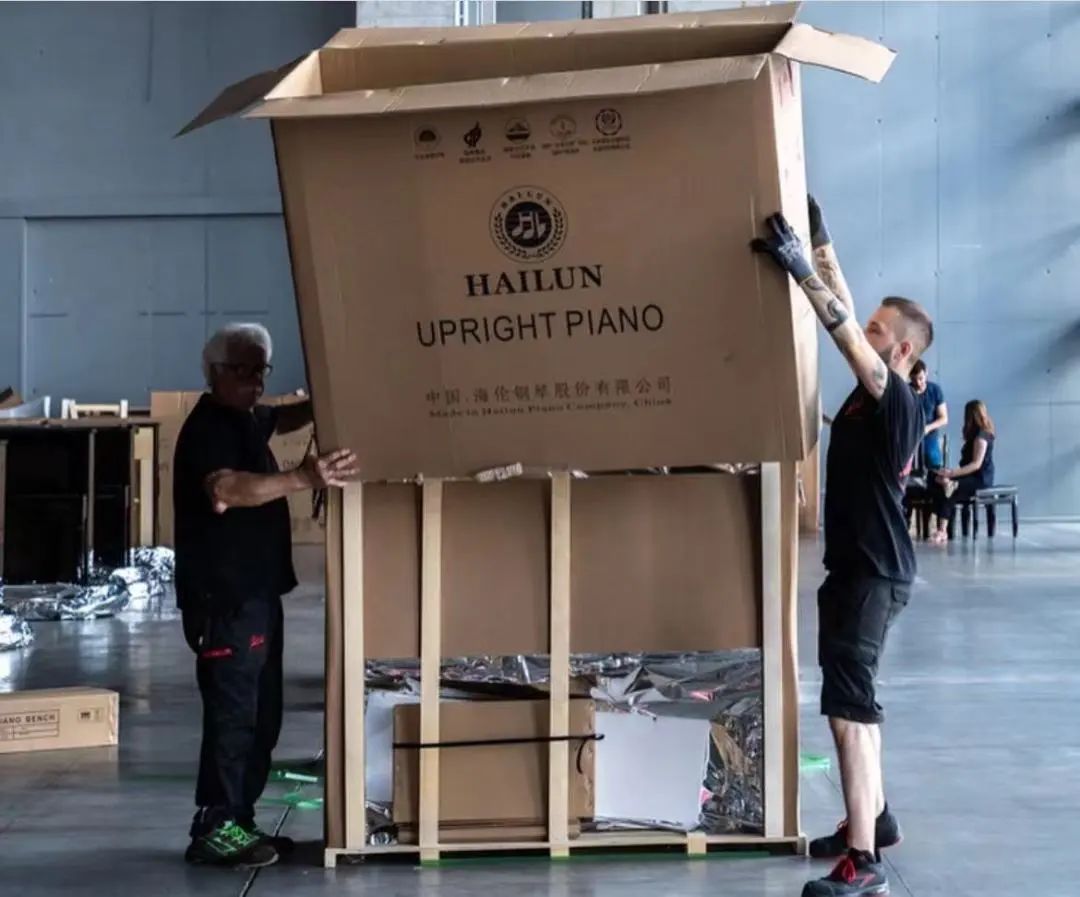 奧地利著名作曲家喬治·弗里德里希·哈斯(Georg Friedrich Haas)創作歷史上唯一為五十臺鋼琴所做的鋼琴曲目將在意大利博爾扎諾國際藝術節20周年慶典演出,此舉引起音樂界的高度關注,這將是一次古典音樂界的盛事。目前,50架立式鋼琴已順利抵達博爾扎諾博覽會,海倫鋼琴委派兩位調律技師協同歐洲技師一起負責音樂會演出保障,為備受期待的“博爾扎諾國際藝術節”全球首演奠定了基礎。