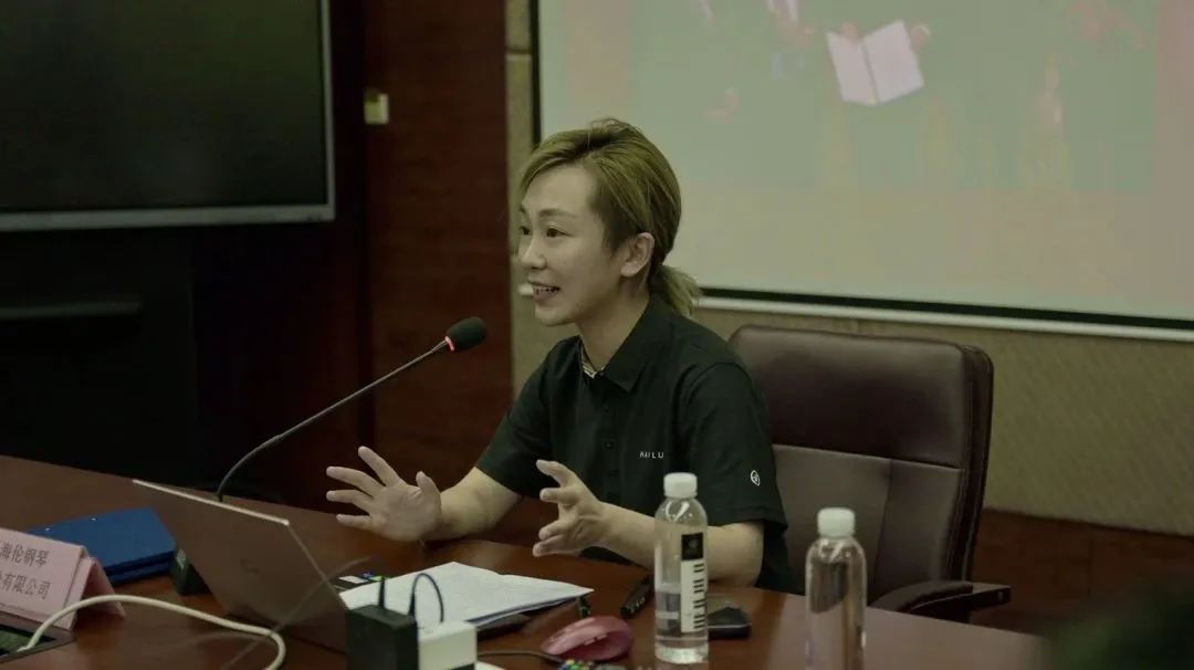 下午,院長團一行前往海倫鋼琴股份有限公司進行參觀考察,現場還舉行了產學研校企合作簽約儀式。簽約儀式前,海倫藝術教育投資有限公司總經理 顧菁介紹海倫智能鋼琴教室項目。